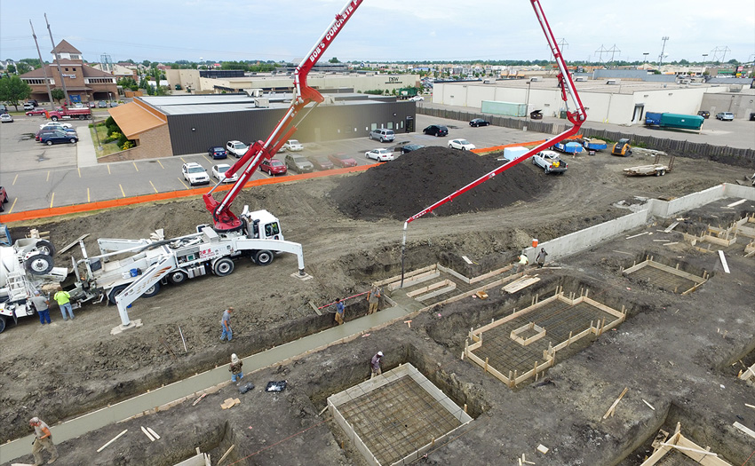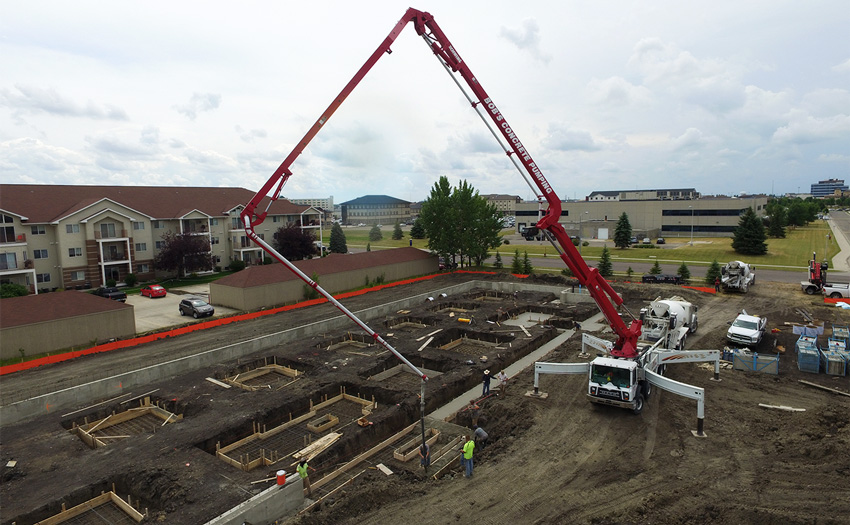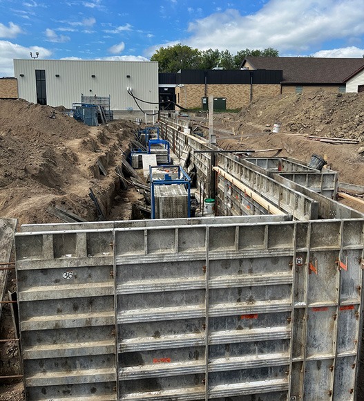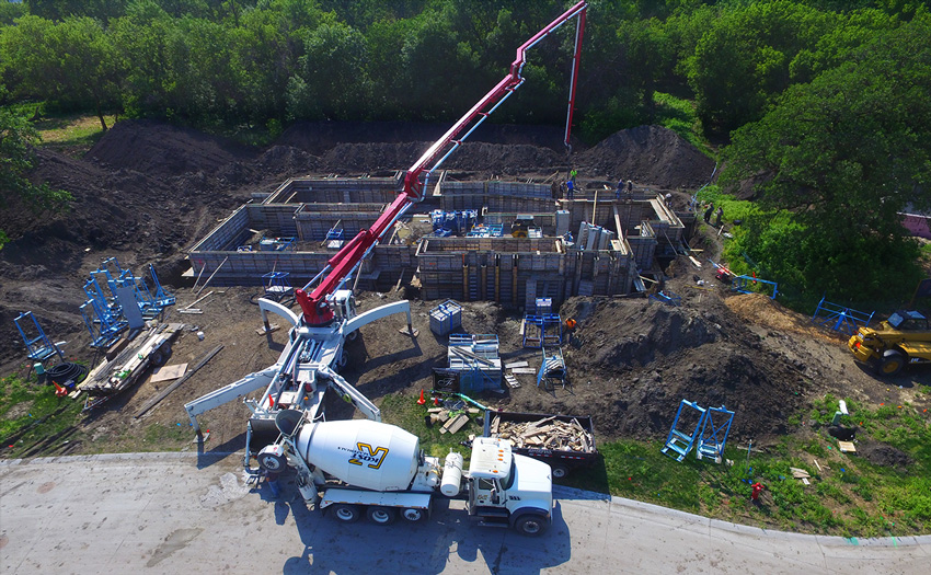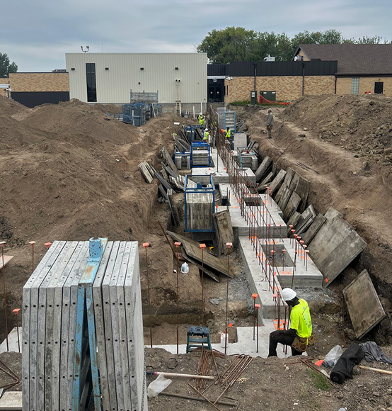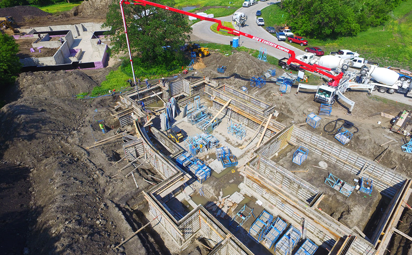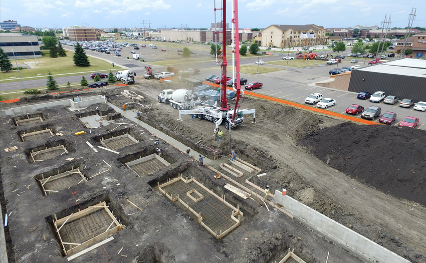 From deep concrete foundations to short walls, we have done it all. We have a top-notch forming system using aluminum forms. Aluminum forms produce a true and straight wall as well as brick patterned forms for a special look in window wells. We can do entry-level housing as well as complicated commercial buildings. We have poured everything from a 2’-high walls all the way to a 24’-high walls. We have several computerized total stations that ensure accurate layout of footings and walls.